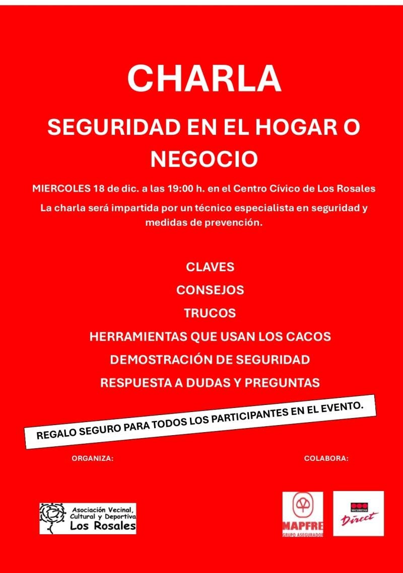 Charla de la policía el 19 de septiembre a las 18:30 en el Centro cívico de Los ROSALES:
