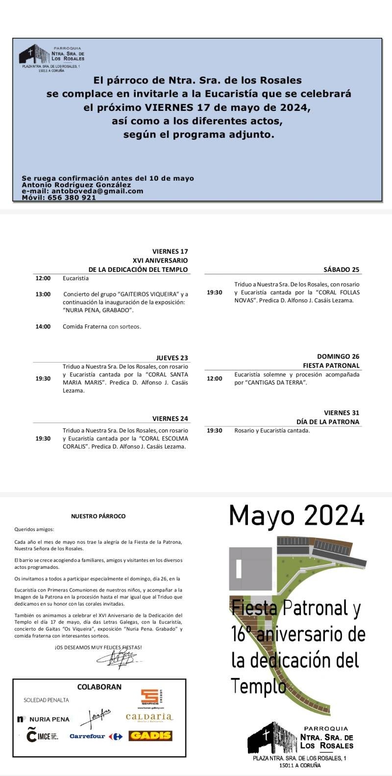 ⛪Na parroquia da Nosa Señora dos Rosales estrean nova páxina de Instagram. Entra, vota un vistazo e entérate de todas an novas actualizadas!!!