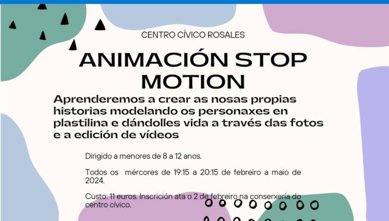 Remitimos información sobre un interesante obradoiro de animación dixital que imos levar a cabo no centro cívico de Rosales.