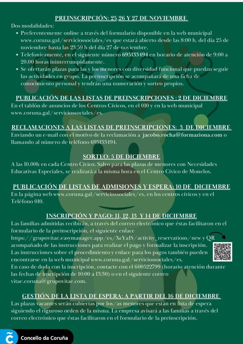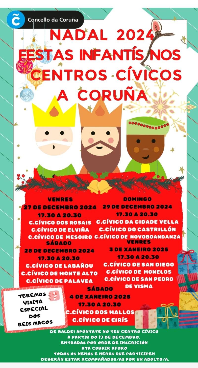 Enviamos información sobre os campamentos de Nadal que se van a celebrar nos centros cívicos da Coruña.
