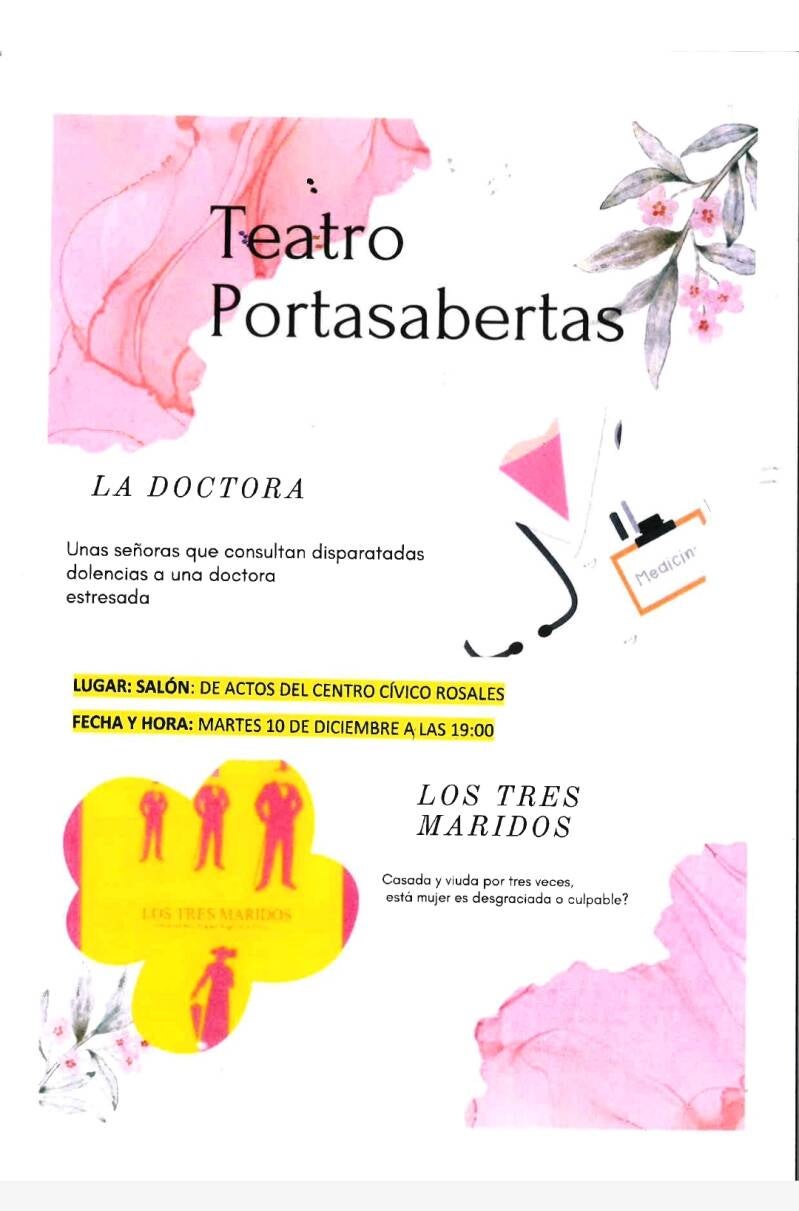 Achegamos información sobre dúas pequenas obras de teatro que vai programar a compañía de teatro afeccionado "Teatro Portasabertas" no centro cívico de Rosales o martes 10 de decembro ás 19.00.