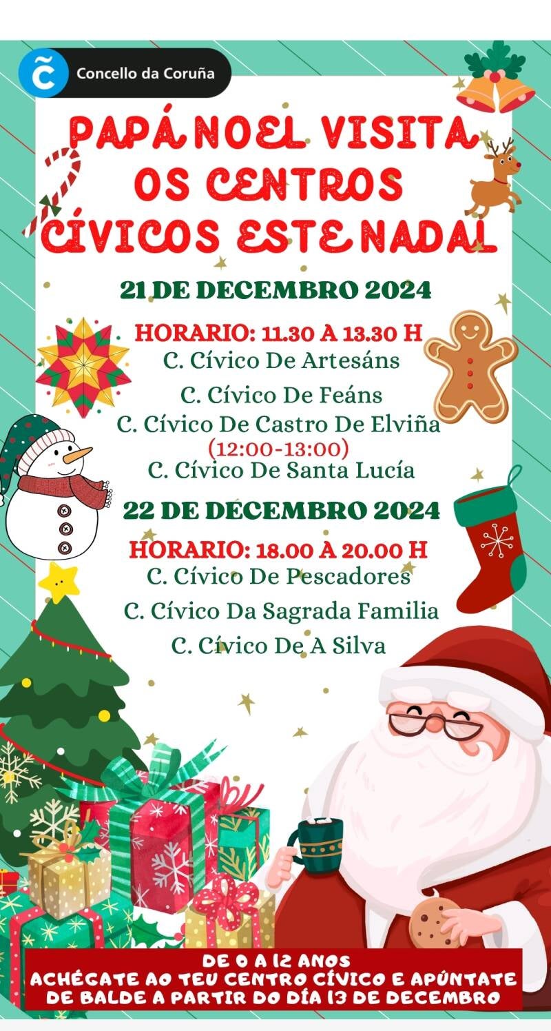 Información sobre as festas e talleres que se van a levar a cabo nos centros cívicos da Coruña durante este Nadal.